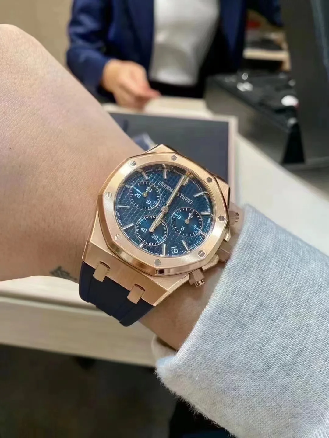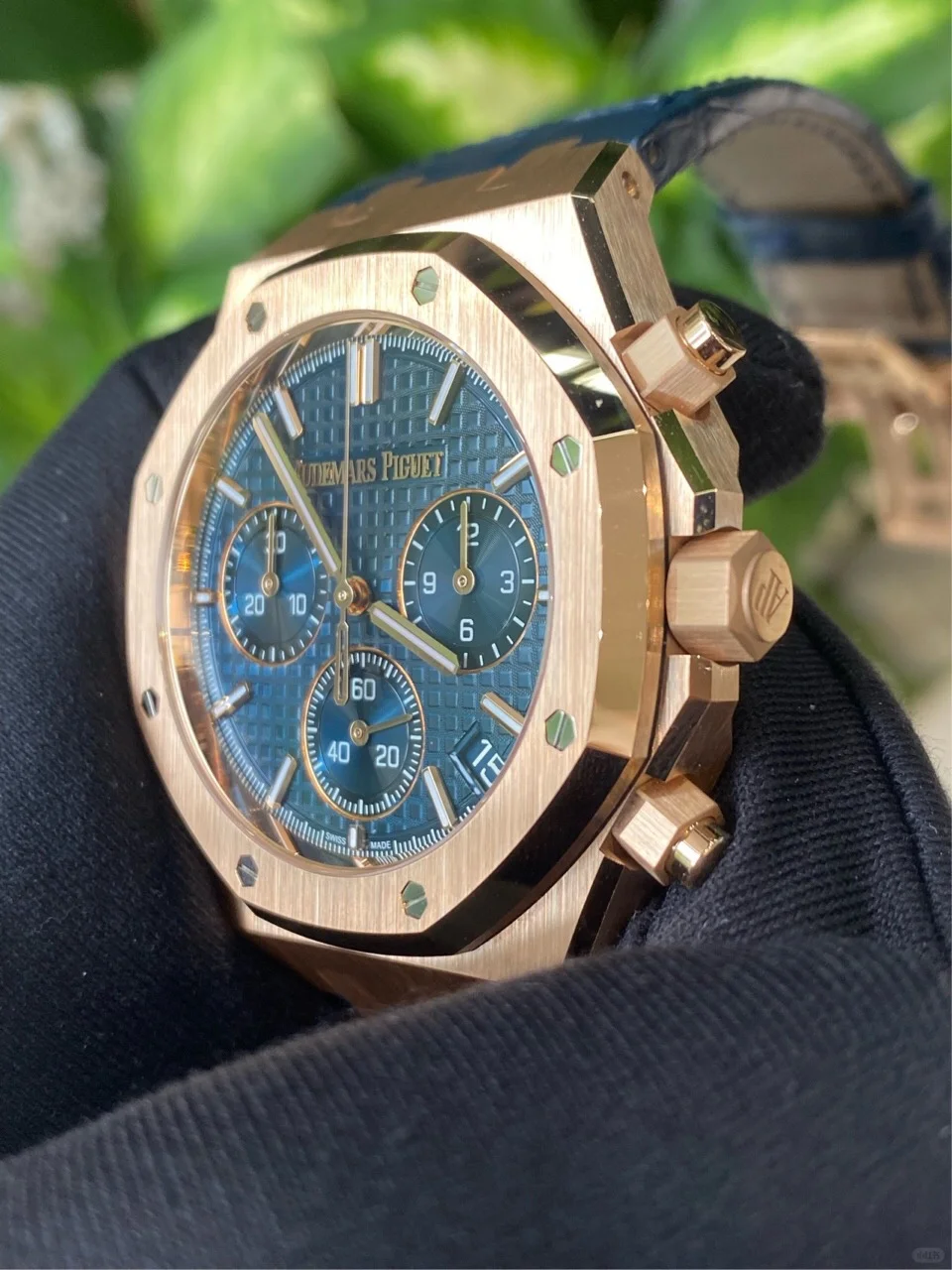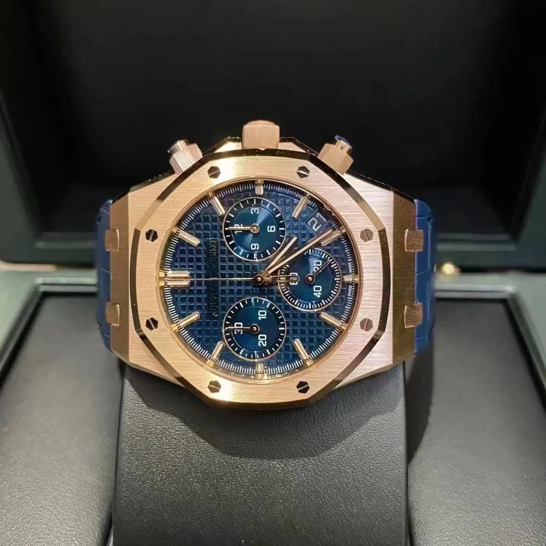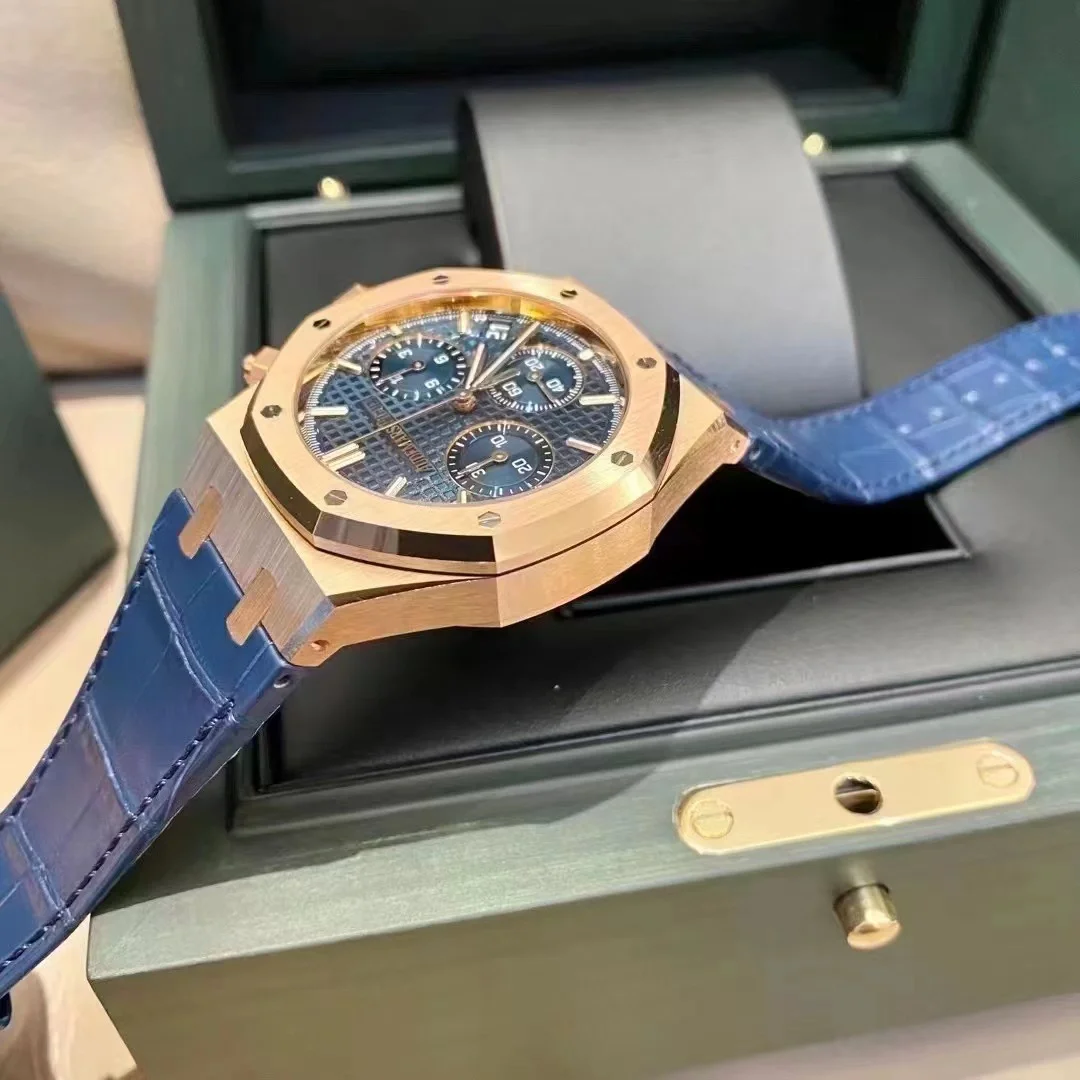 • Audemars Piguet Royal Oak Chronograph Rose Gold Blue Dial 41mm Ref. 26240OR.OO.D315CR.02